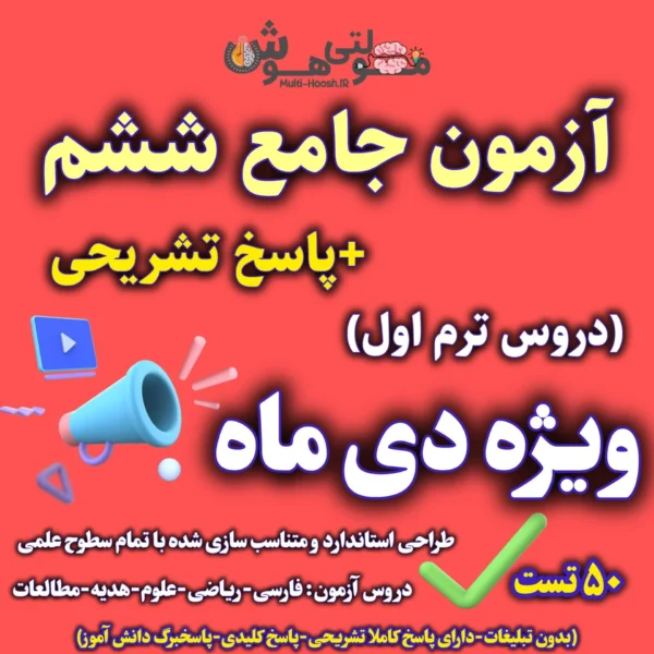 - طراحی حرفهای: آزمون جامع دی ماه ششم توسط متخصصین آموزش طراحی شده و تمامی جزئیات در آن رعایت شده است.