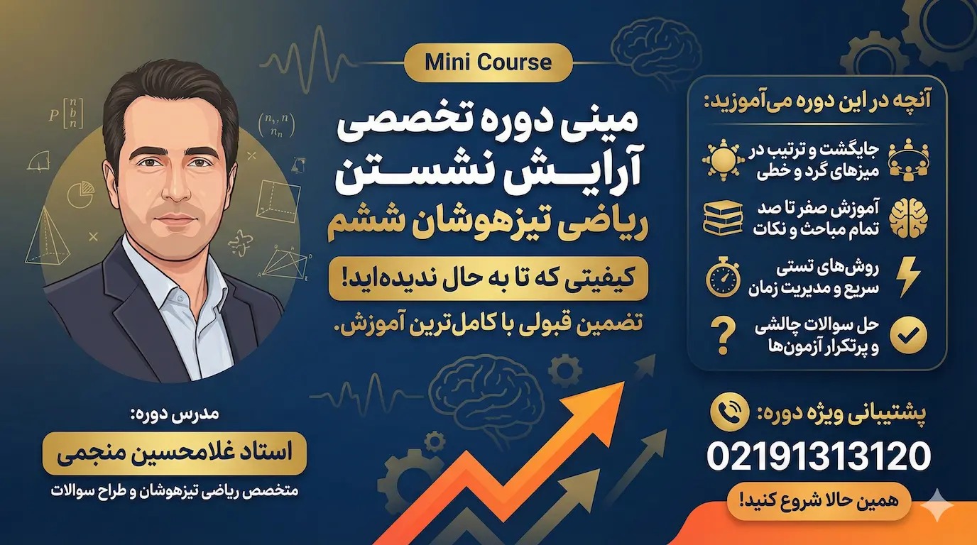 این مینی دوره، آخرین و مؤثرترین قدم شما برای بستن پروندهٔ یکی از مهمترین مباحث هوش منطقی است. همین حالا دکمهٔ زیر را فشار دهید تا دانشآموزانِ عادی، شما را بهعنوان یک رقیب هوشمند در آزمون تیزهوشان بشناسند.